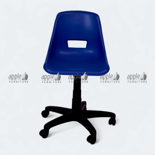 •Blue Plastic Swivel Chair: Eye-catching blue seat brightens up any space—energize your workspace with style